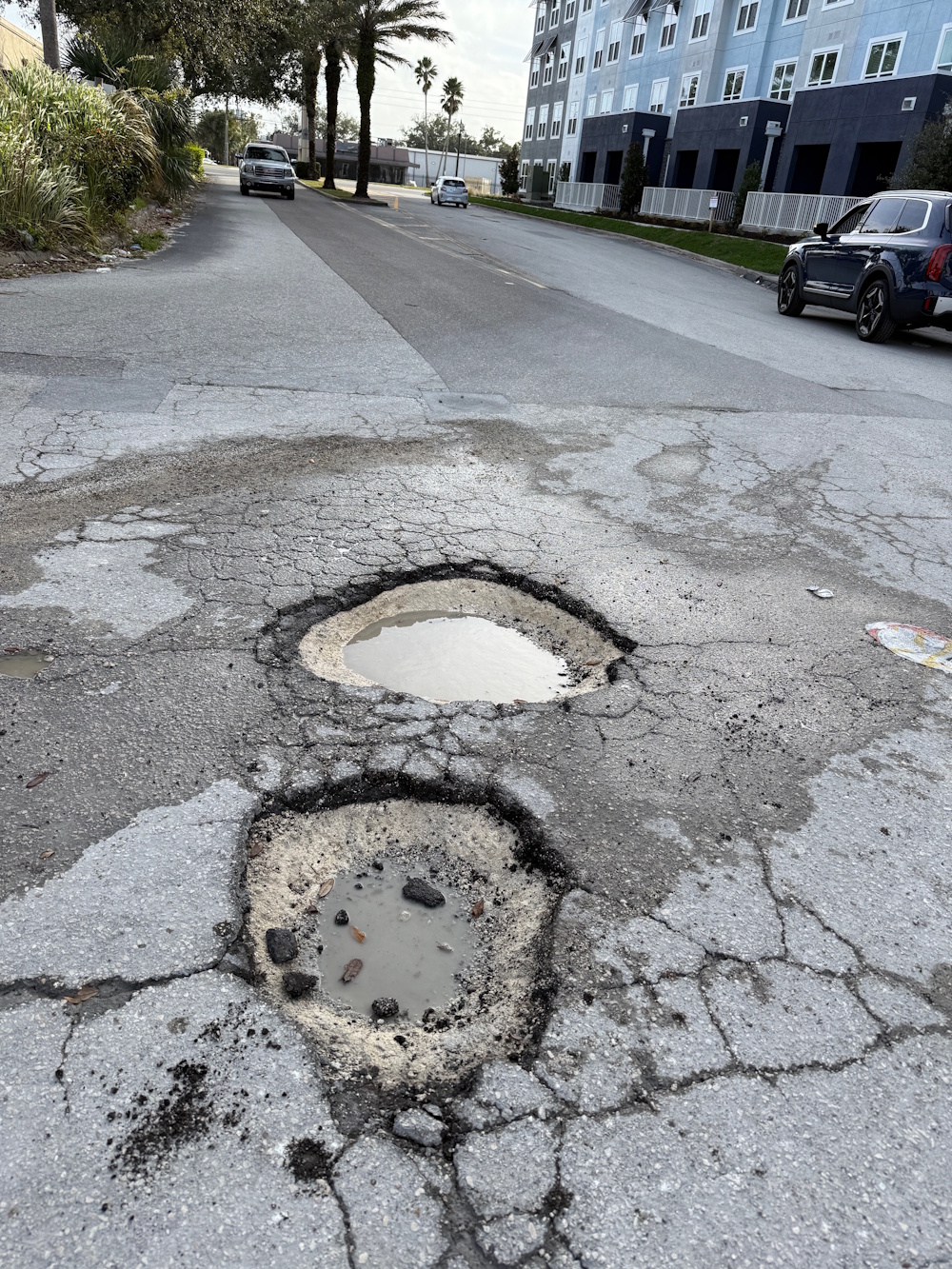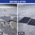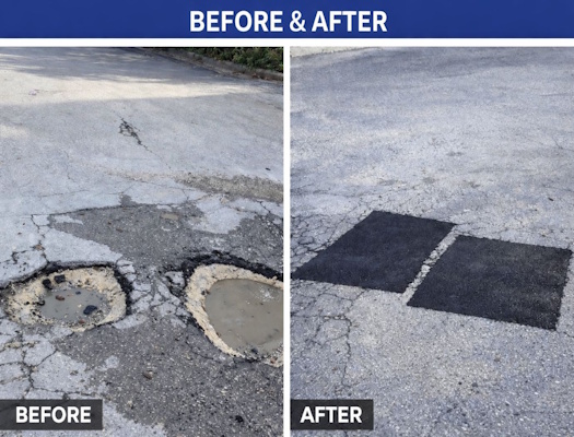 These potholes weren’t just ugly—they were a liability waiting to happen. Standing water, crumbling asphalt, and failed patches are a guaranteed way to damage vehicles and invite complaints. We cut out the failed sections, properly prepped the base, and installed clean, durable asphalt patches that restore a smooth, safe driving surface and blend back into the surrounding pavement. This is the kind of preventative repair that actually saves money long term, instead of kicking the can down the road with temporary fixes that fail in months. If your lot looks like this, it’s already overdue—addressing potholes early protects your property, your tenants, and everyone driving through it.