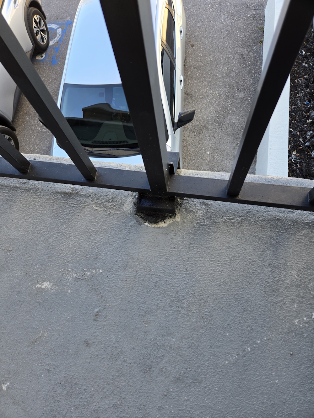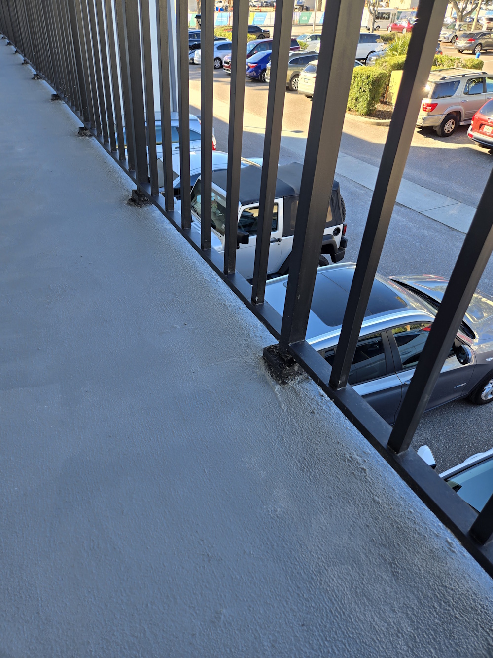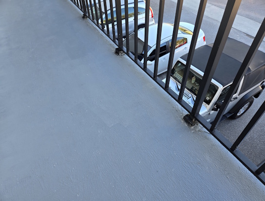 This elevated walkway railing had deteriorated mounting points, failing concrete around the posts, and visible wear that created both safety concerns and an unprofessional appearance. We addressed the issue by stabilizing and re-bracing the railing bases, repairing compromised concrete, and refinishing the metal with a durable protective coating to extend its service life. The result is a secure, code-conscious railing system with a clean, uniform finish that improves safety, prevents further structural damage, and restores the overall look of the property.